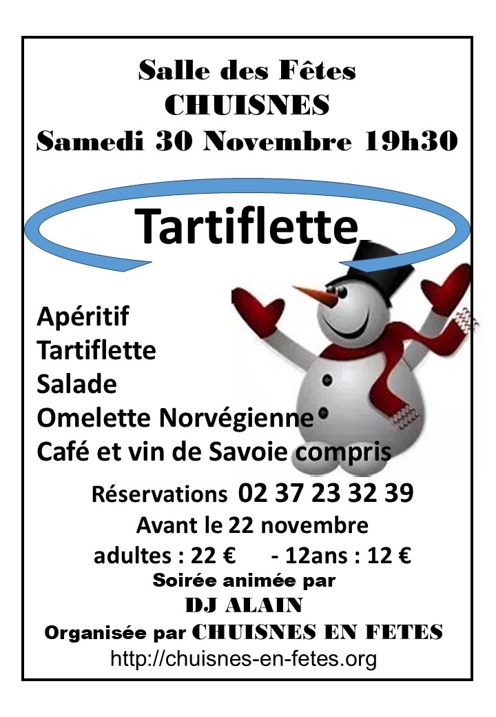 Soirée "Tartiflette" * Salle des Fêtes de Chuisnes samedi 30 novembre 19h30